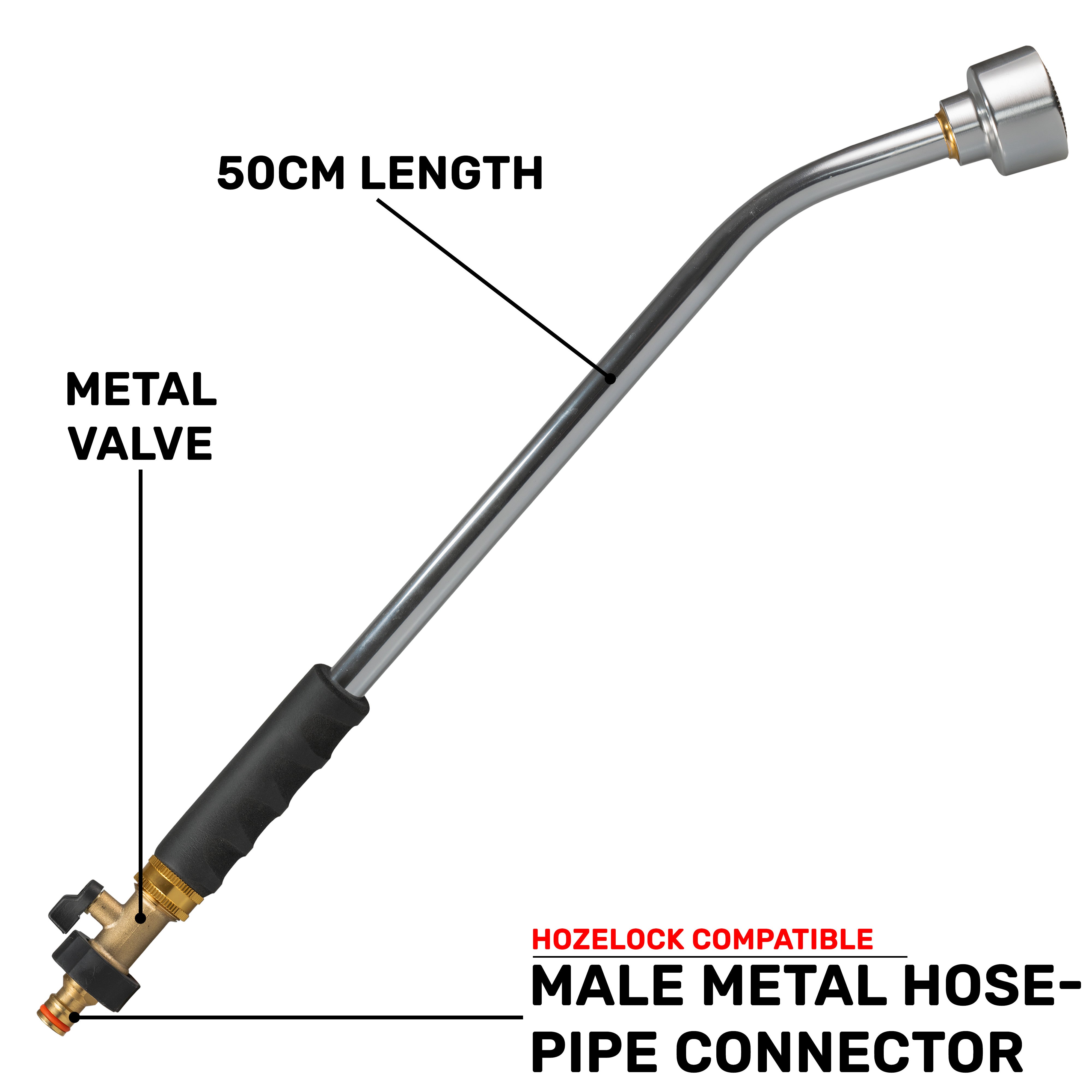 Our Watering Lances are designed for precision and convenience. At 50cm in length, this watering lance offers extended reach, allowing you to effortlessly water hanging baskets, flower beds, and distant plants with ease.