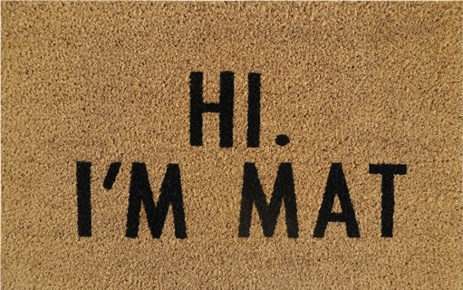 These mats enhance the visual appeal of an entrance and add a touch of personality to the space creating a friendly inviting atmosphere for guests. This mat reads ‘Hi, I’m Mat’ making it a humorous addition to your home.