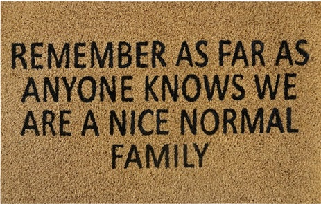 These mats enhance the visual appeal of an entrance and add a touch of personality to the space creating a friendly inviting atmosphere for guests. This mat reads ‘Remember as far as anyone knows we are a nice normal family’ adding a touch of humour to your living space.