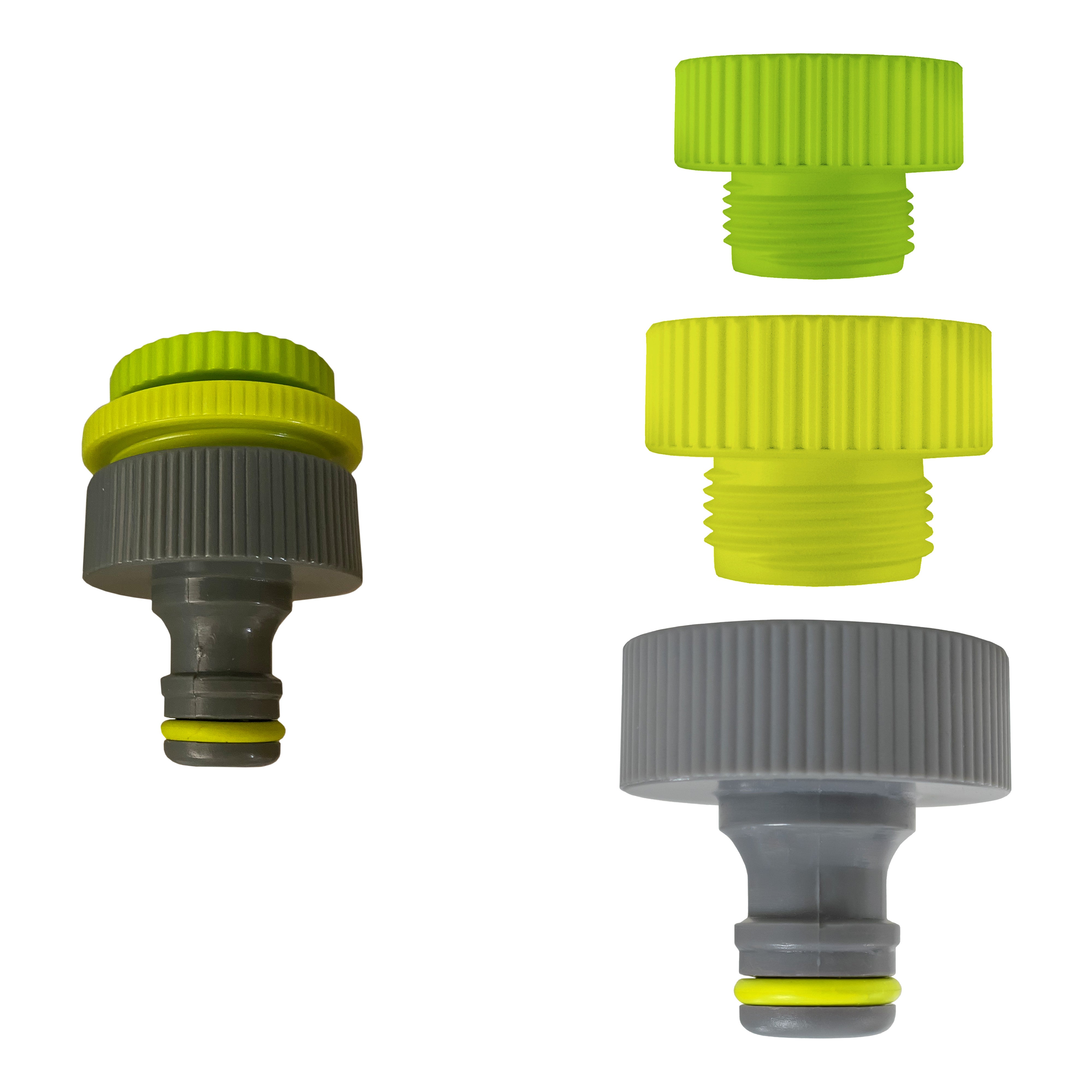 The Female Tap Connector 1" - 3/4"-1/2” BSPF thread is an essential tool for anyone looking to streamline their garden watering system or outdoor plumbing setup. This connector has three parts with different thread sizes, allowing it to easily fit 1-inch BSP (British Standard Pipe), 3/4-inch BSP and ½-inch BSP threads. This versatility ensures compatibility with a wide range of taps and hoses, making it an invaluable addition to your collection of garden accessories or plumbing tools.