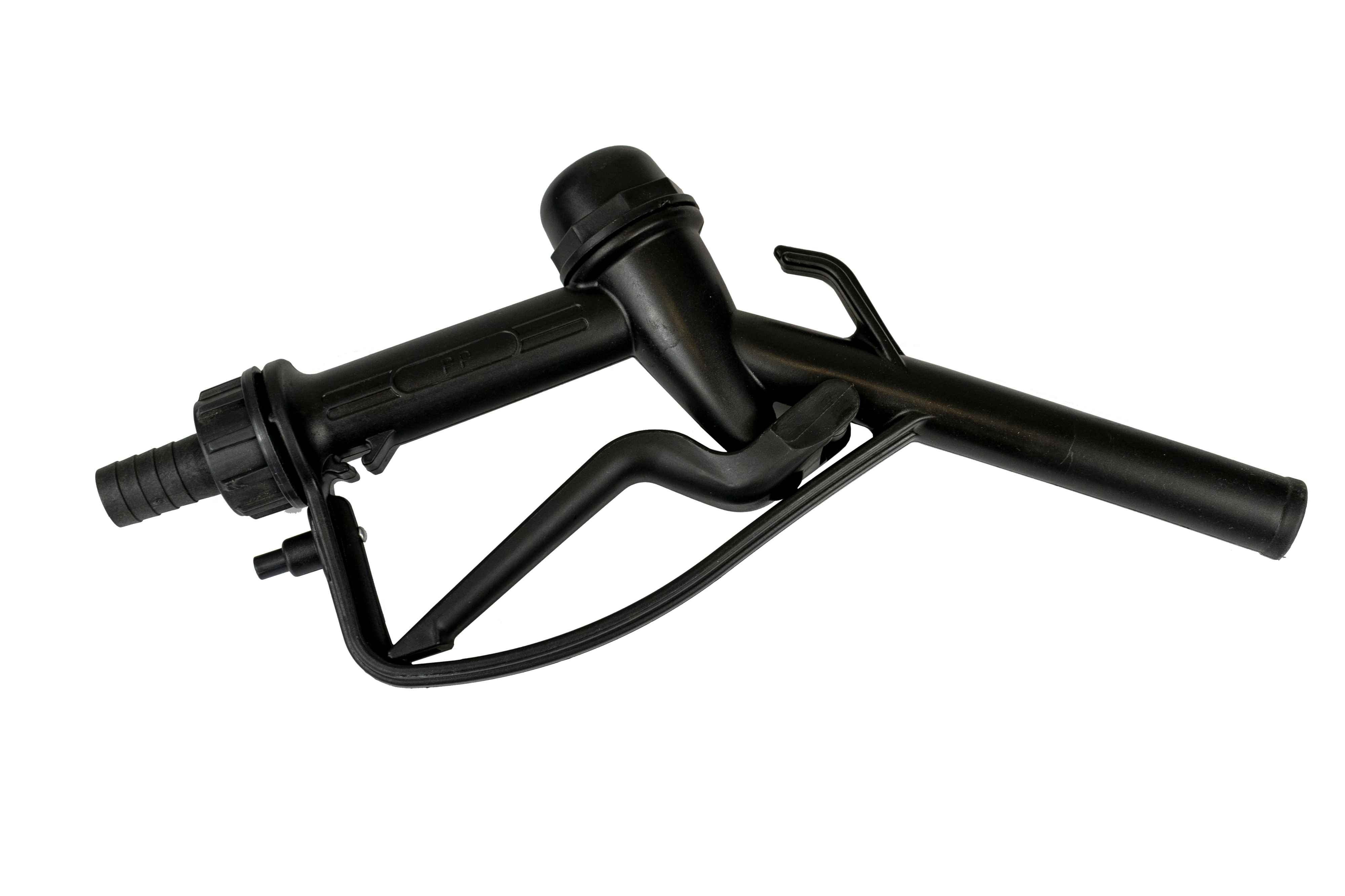 The Fuel Gun Nozzle in Black with a 3/4" Barb Inlet and 25mm Outlet is a sturdy and reliable tool designed for dispensing diesel and other non-corrosive liquids in agricultural and plant environments. Constructed from durable plastic, this nozzle ensures longevity and resilience to the demands of daily use. The 3/4" barb inlet provides a secure connection to fuel hoses, minimizing the risk of leaks and ensuring efficient fluid transfer. Meanwhile, the 25mm outlet facilitates a consistent flow rate, optimizing fuelling operations for various agricultural applications.
