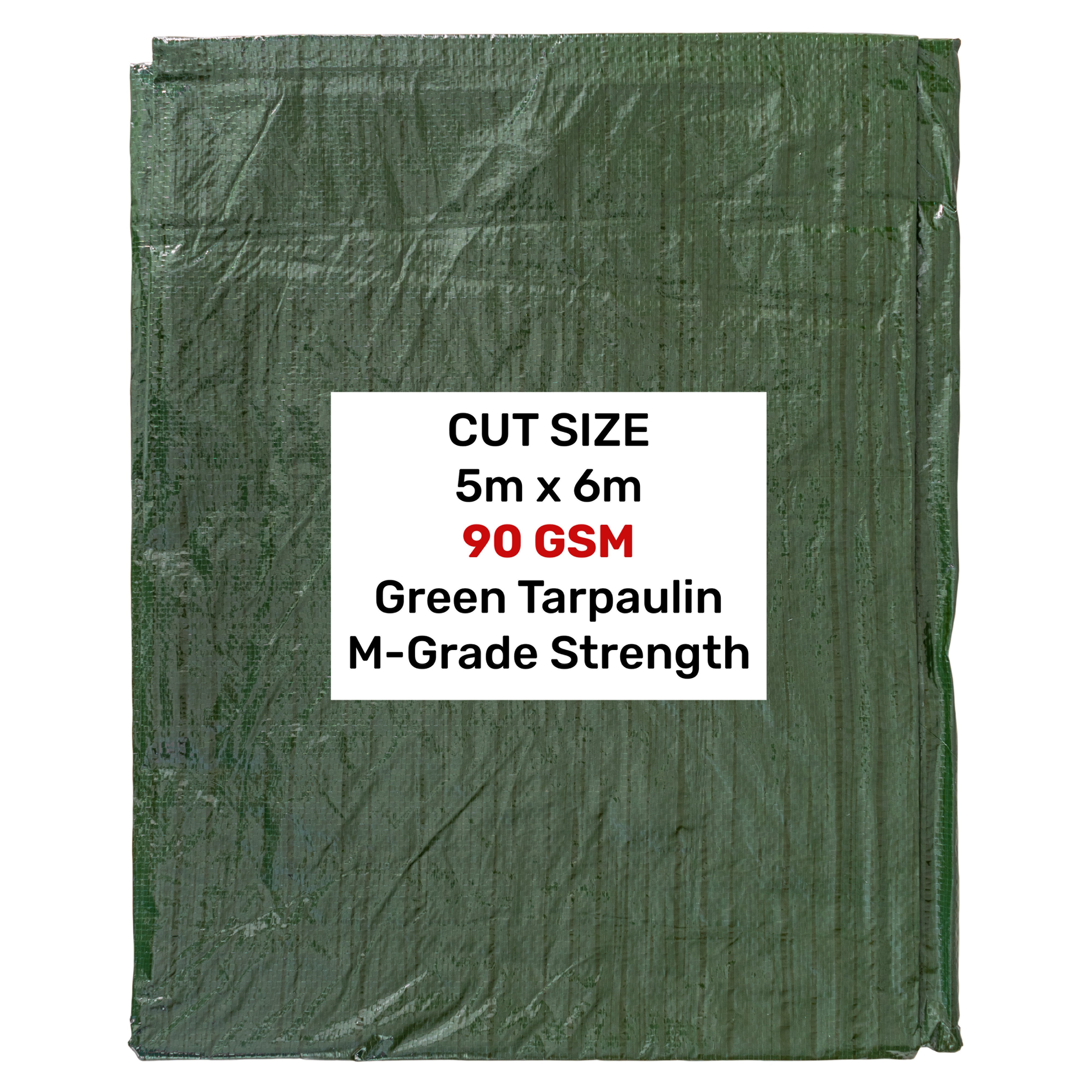 Our Green 90gsm tarps come in various sizes allowing users to choose the one that best fits their needs. This tarpaulin is 5m x 6m. Other sizes are available on separate listings.