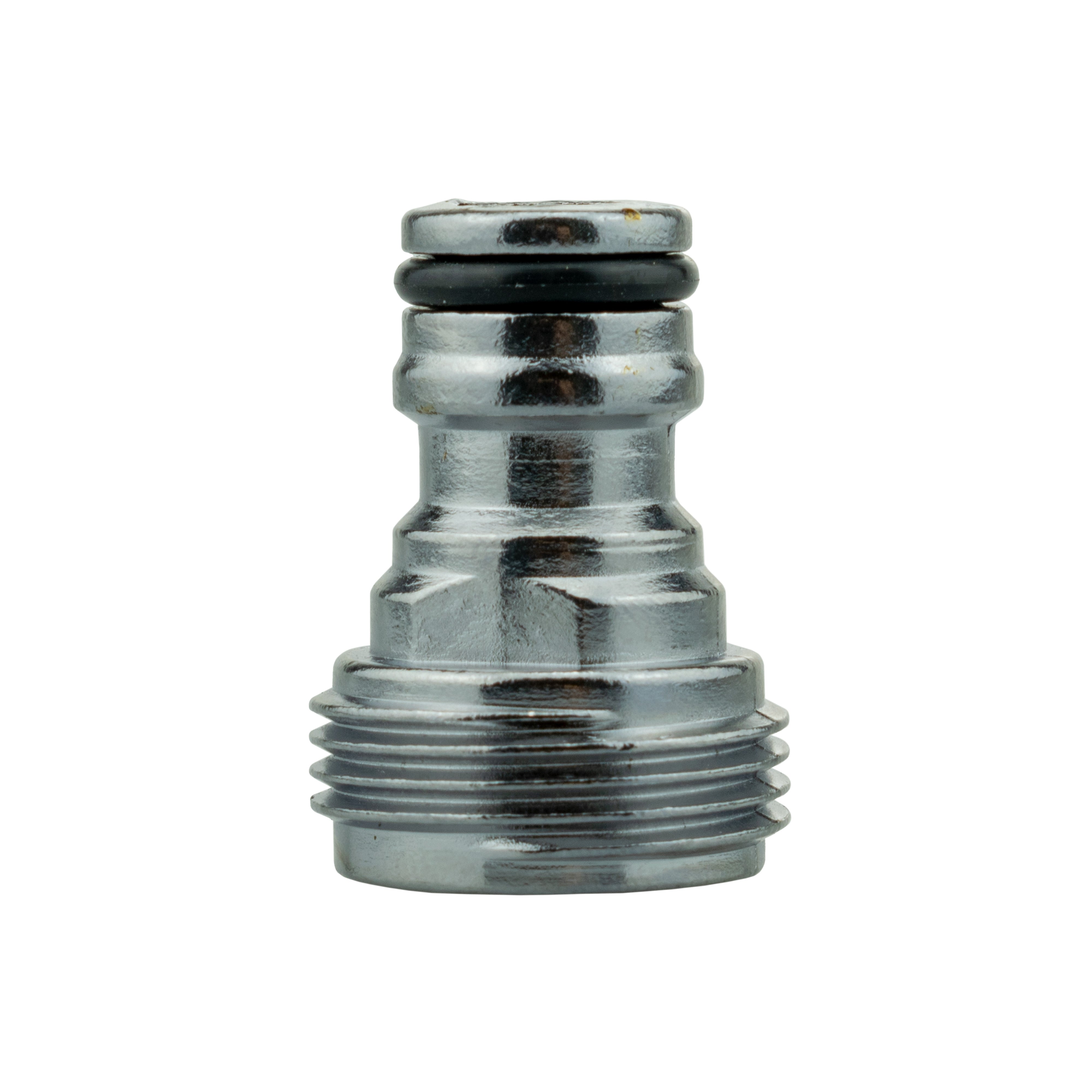 The Tap Connector Snap-On Male - 3/4" BSPM is a high-quality fitting designed to provide a reliable and efficient connection for garden hoses and other water systems. Constructed from metal this connector has increased durability ensuring a long service life even in demanding outdoor conditions. Its solid construction not only guarantees a secure fit but also maintains the integrity of the water flow, preventing leaks and enhancing overall performance.