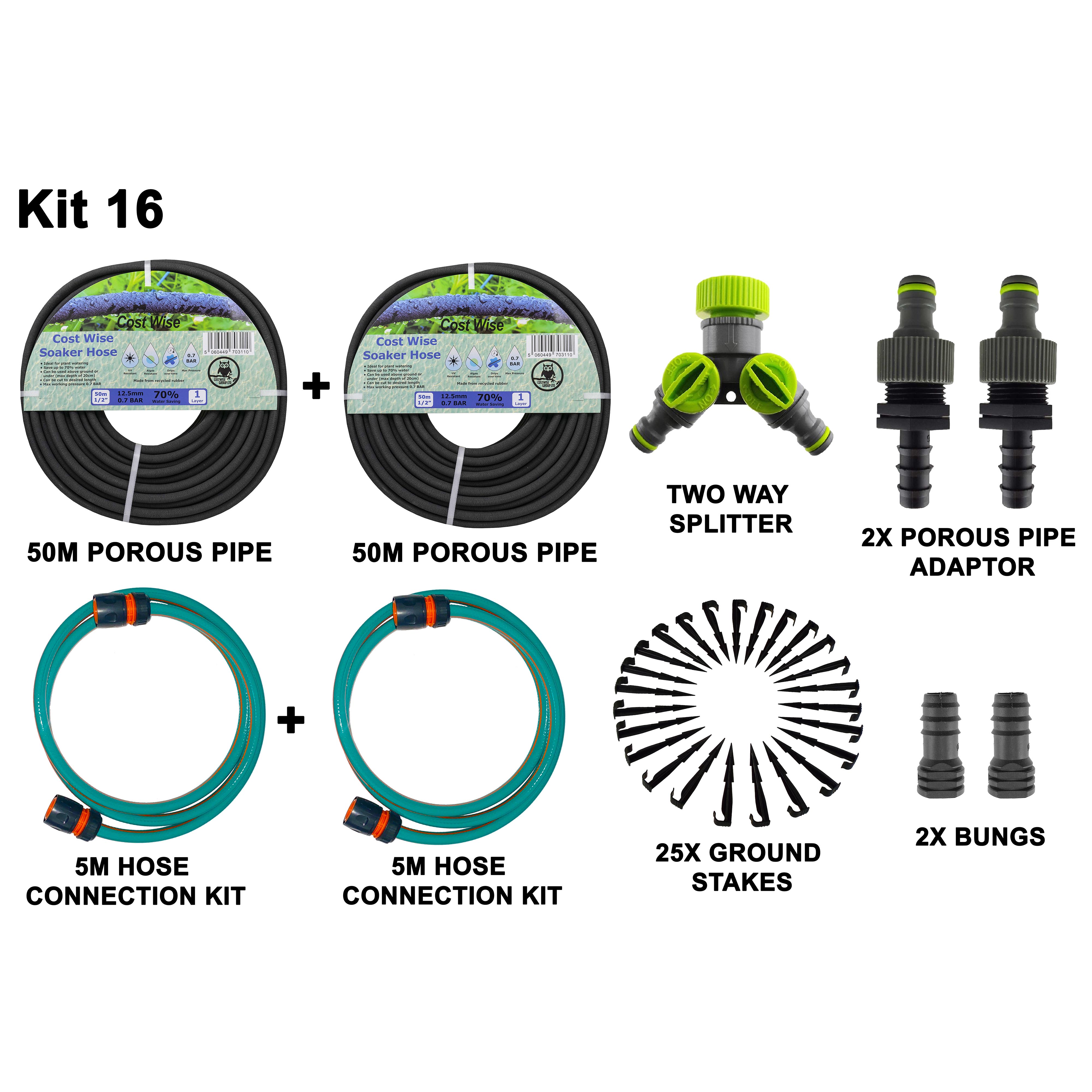The Porous Pipe Garden Irrigation Kit (POROUS-KIT16) is the ultimate solution for efficient and effective garden watering. This comprehensive kit includes everything needed to set up a successful irrigation system, ensuring your plants receive the optimal amount of water.