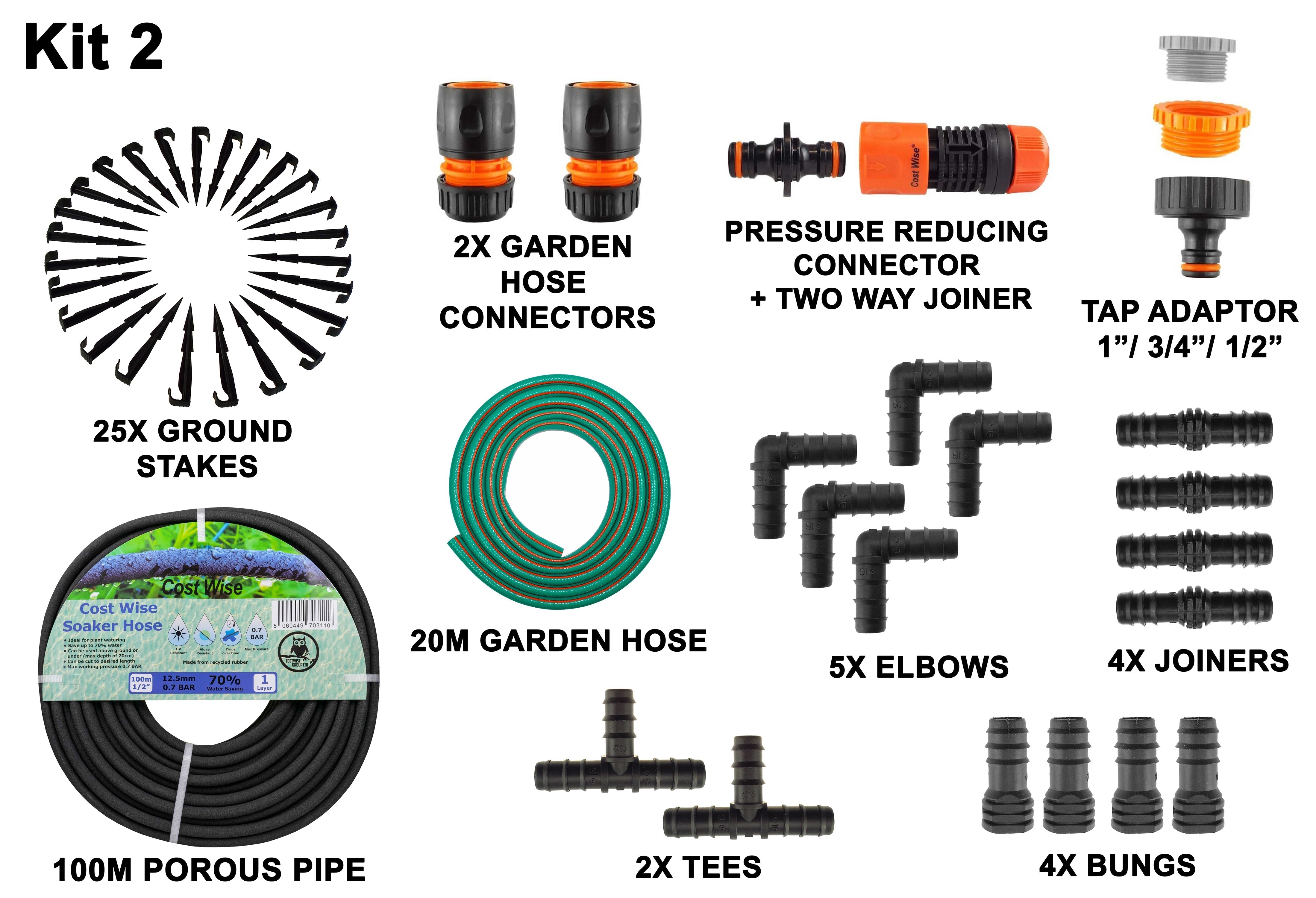 The Porous Pipe Garden Irrigation Kit (POROUS-KIT2) is the ultimate solution for efficient and effective garden watering. This comprehensive kit includes everything needed to set up a successful irrigation system, ensuring your plants receive the optimal amount of water.