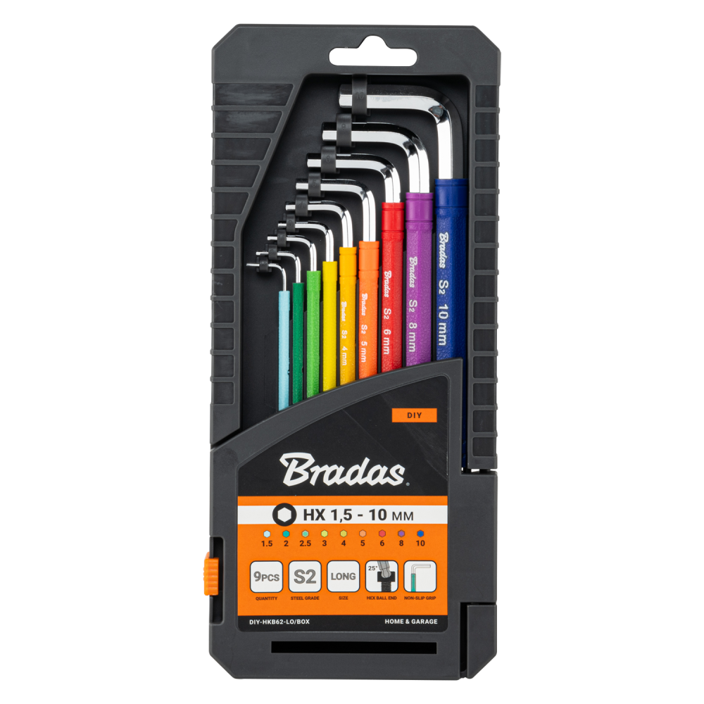 This 9-piece Ball-End Allen Key Set is a must-have for both DIY enthusiasts and professionals. Designed for precision and convenience, the set includes keys ranging from 1.5 mm to 10 mm, making it suitable for a wide variety of tasks. Its ball-end design allows users to work at angles of up to 25°, providing added flexibility in hard-to-reach areas.
