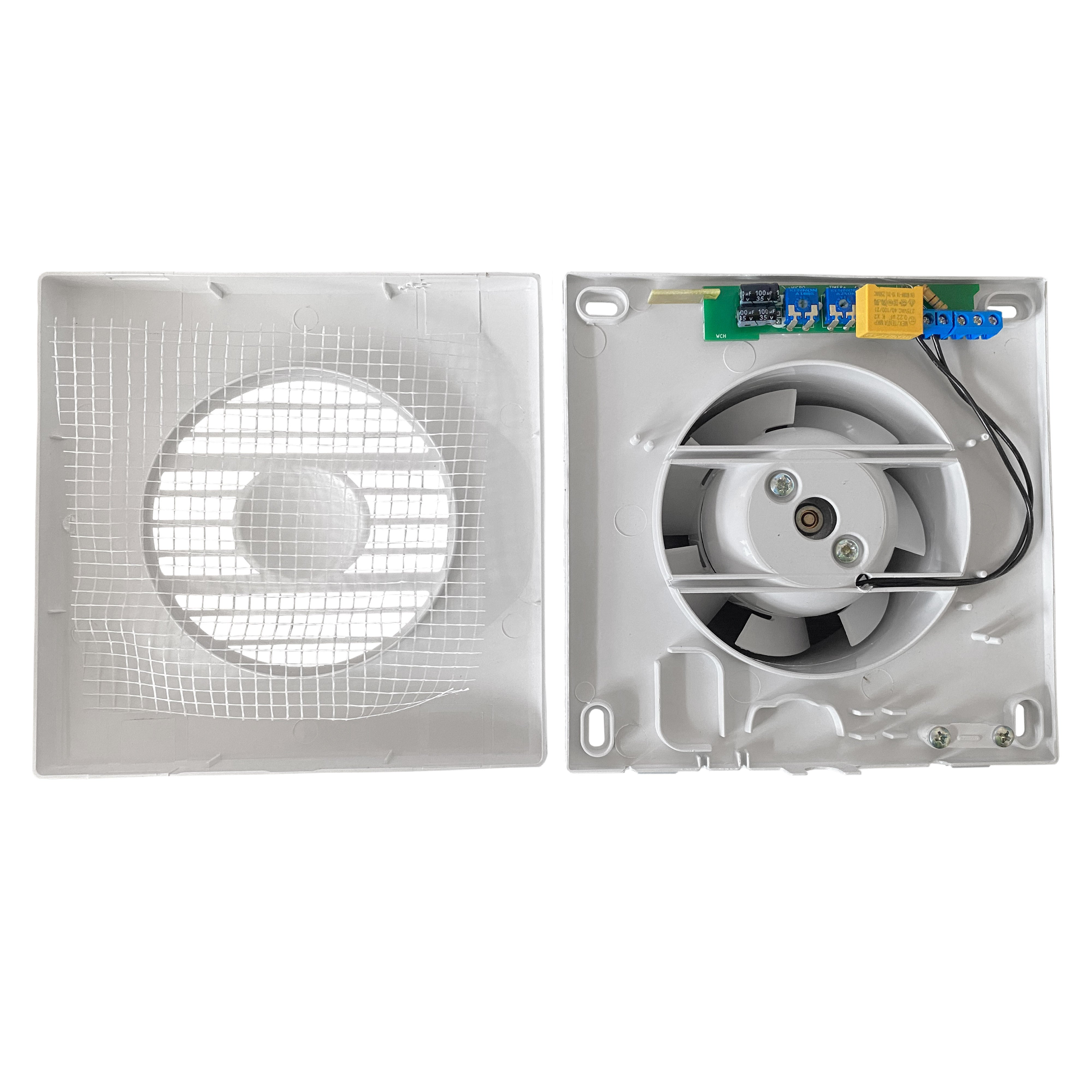 The RICO axial fan with a 100 mm diameter, featuring a timer switch, is a modern and efficient ventilation solution designed with a flat, compact profile. Constructed from durable ABS plastic, this fan boasts a UV coating that prevents yellowing, ensuring it retains its pristine white colour over time. Its sleek and tasteful design seamlessly integrates into any interior decor, providing both functionality and aesthetic appeal.