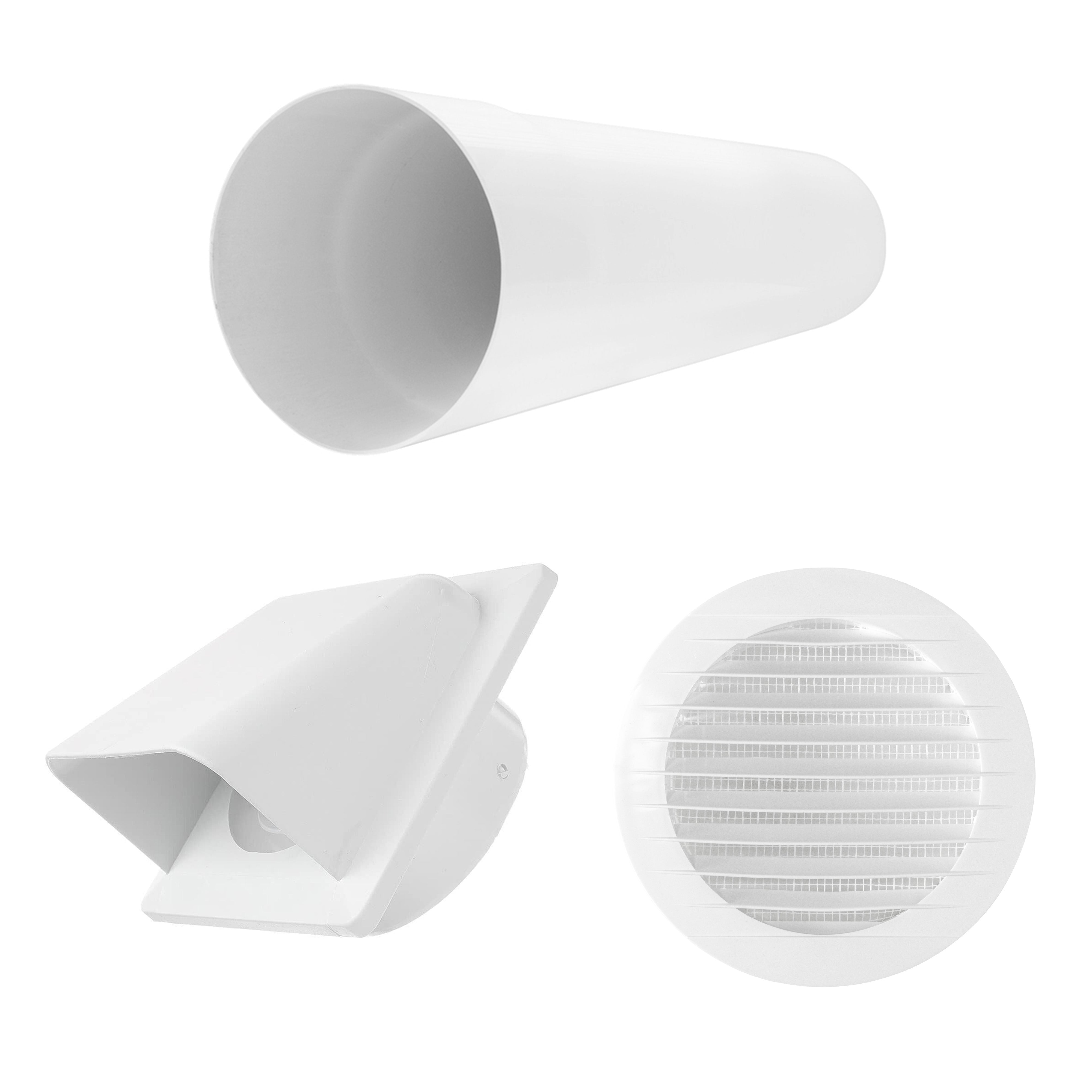 This rigid round PVC ducting pipe is 50cm long and designed to fit seamlessly with the fan or vent included in a through-wall vent kit. Ideal for creating a clean, protected air path, it runs through the wall to shield airflow from dust, debris, or insulation material within the cavity. Made from durable plastic, the pipe ensures reliable performance and can be easily cut to size with a standard hand saw, making it a practical choice for both DIY and professional ventilation installations.