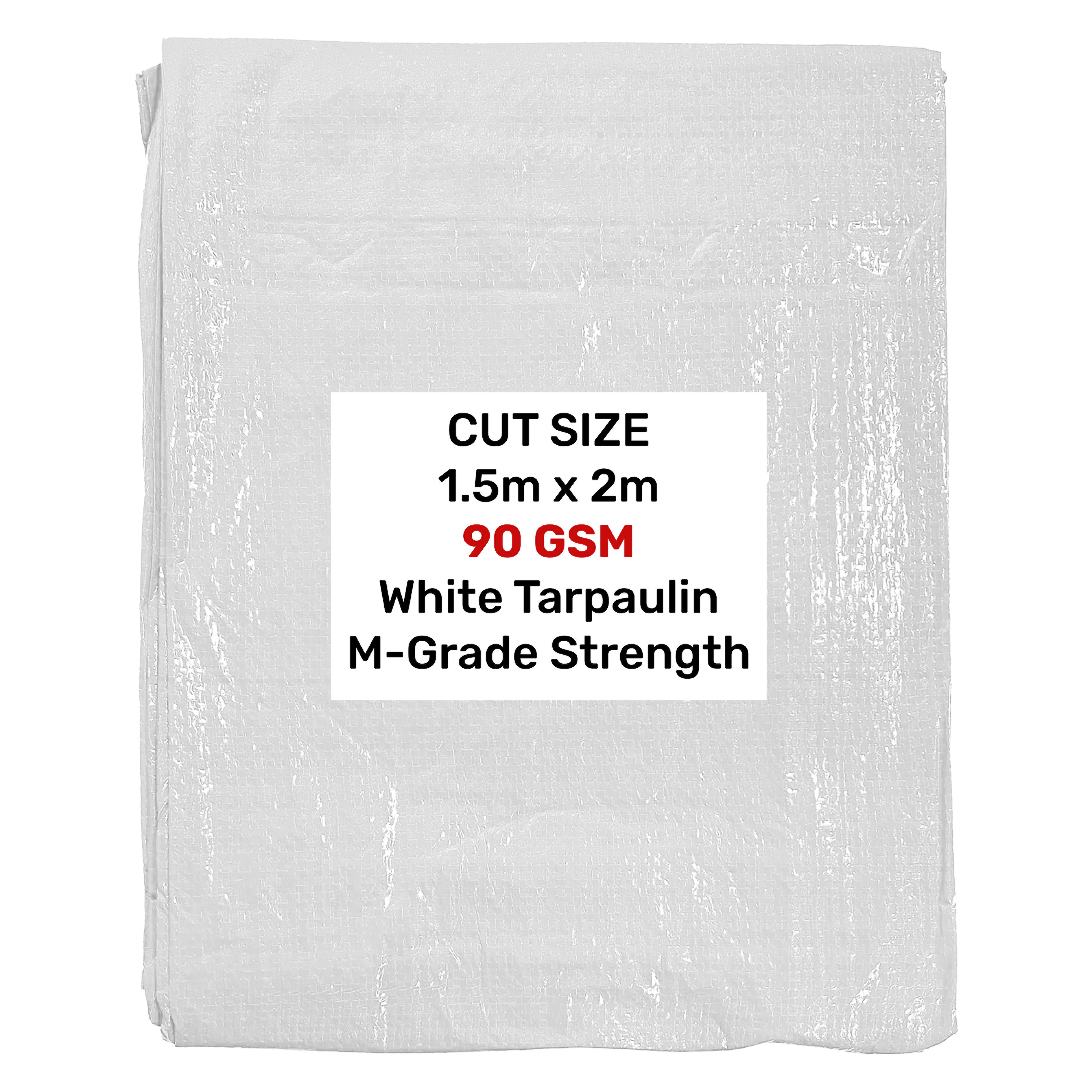 Our White 90gsm tarps come in various sizes allowing users to choose the one that best fits their needs. This tarpaulin is 1.5m x 2m. Other sizes are available on separate listings.
